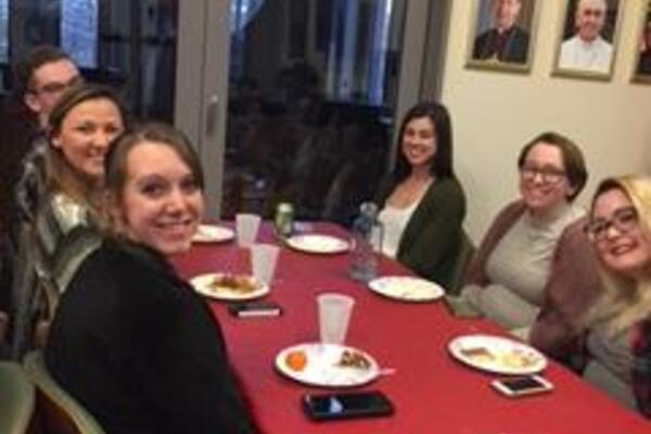 On Friday March 17, 2017, professors Abadie and Daddah, organized a “Conversation Evening" for their French Conversation classes. They invited their students to an evening of conversation and good food at the Campus Ministry Kitchen. The students conversed with a group of French speaking people from