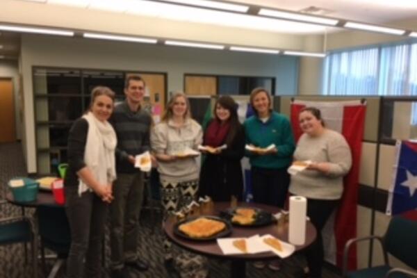 The French Club celebrated the Epiphany on Tuesday, January 24, 2017. Professor Abadie made a delicious traditional "galette des rois." (Kings cake) It was a great opportunity to speak French and enjoy some delicious French food.