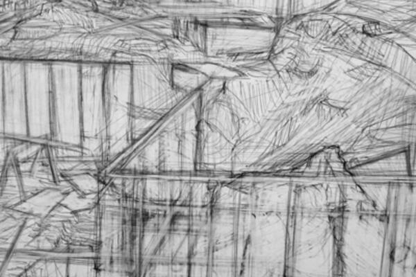 FRAMEWORK: Drawings and Prints of the CAC Construction will be on display September 1 through November 15, 2015 in the Robert & Elaine Stein Galleries. Professor Kim Vito's advanced drawing and relief printmaking classes spent last spring semester making drawings from observation at the Creative