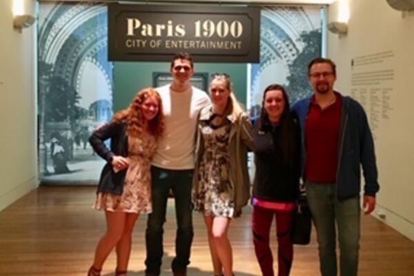 On Saturday April 6, French professor Pascale Abadie and French students visited the “Paris 1900” exhibit at the museum of Cincinnati. They then enjoyed a yummy “gauffre” (waffle) at the Taste of Belgium restaurant.