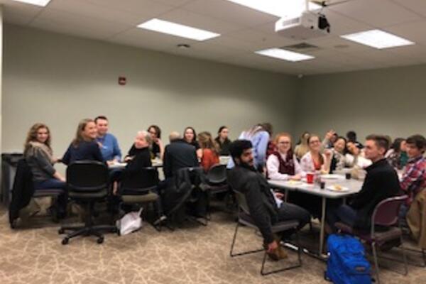 On Friday November 16, 2018, professors Abadie and Daddah, organized a “Conversation Evening" for their French Conversation classes. They invited their students to an evening of conversation and good food. The students conversed with a group of French speaking people from Mauritania, Rwanda, Senegal