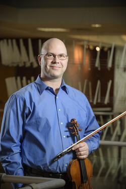 Mr. Sobieski also coaches the department’s chamber music ensembles. Passionate about the art of music performance, he challenges and nurtures budding performers in his studio and beyond. Students regularly refer to him as “inspiring,” and his commitment to their education is evident in his students’ ongoing successes. He is also an outstanding violinist, notable for his technical skill, deep musical understanding, and superior musicianship. He has been named Honors Teacher of the Year for his course in non-western music. Mr. Sobieski plays regularly in university faculty ensembles, serving as concertmaster for the University Symphony Orchestra and Opera Orchestra and playing at ArtsGala, donor receptions, and recruitment concerts. Off-campus, he is concertmaster for the Lebanon Symphony Orchestra and Central Ohio Symphony Orchestra and frequently plays with the Dayton Philharmonic Orchestra.