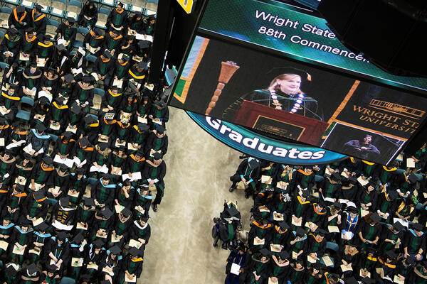 Wright State University President Cheryl B. Schrader told graduating students at fall commencement that acts of kindness can be a powerful world-changing force.