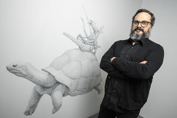 From giant tortoises to elephants to pigs stacked atop one another, creating original graphite drawings on gallery walls has become a feature of many of Andrew Dailey’s exhibitions.