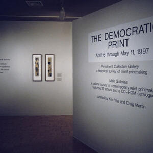 THE DEMOCRATIC PRINT provides a comprehensive look at contemporary relief printmaking. The project is comprised of an exhibition of prints by 15 contemporary artists, a CD-ROM catalogue on a touch-screen monitor, and a historical survey of relief prints on loan from various Ohio museums, private collections, and the permanent collection of Wright State University.