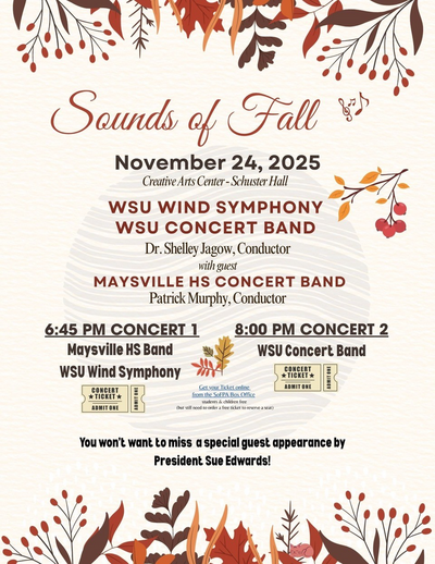 Come enjoy dynamic wind repertoire performed by our outstanding student musicians and celebrate the power of live music with our campus and community. AND special guest President Edwards on flute!
