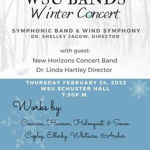 Please join the wind bands in their first concert of the 2022 year, under the direction of Dr. Shelley Jagow. With special guest director Dr. Linda Hartley of the New Horizons Concert Band.