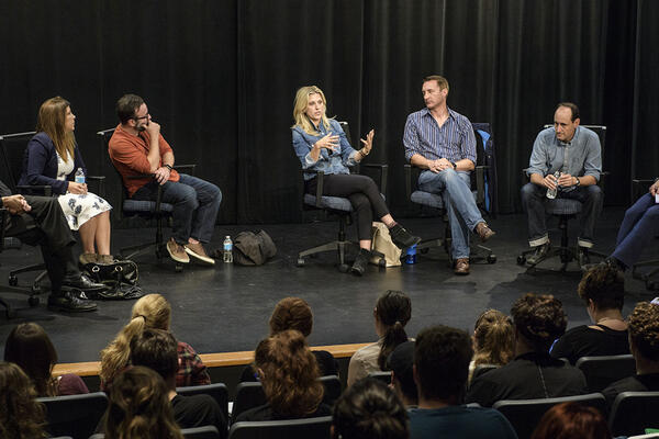 Five highly successful graduates of Wright State's theatre and motion pictures programs returned to campus for a day of workshops with current performing arts students.