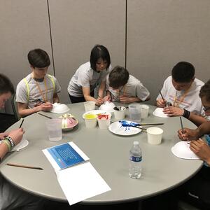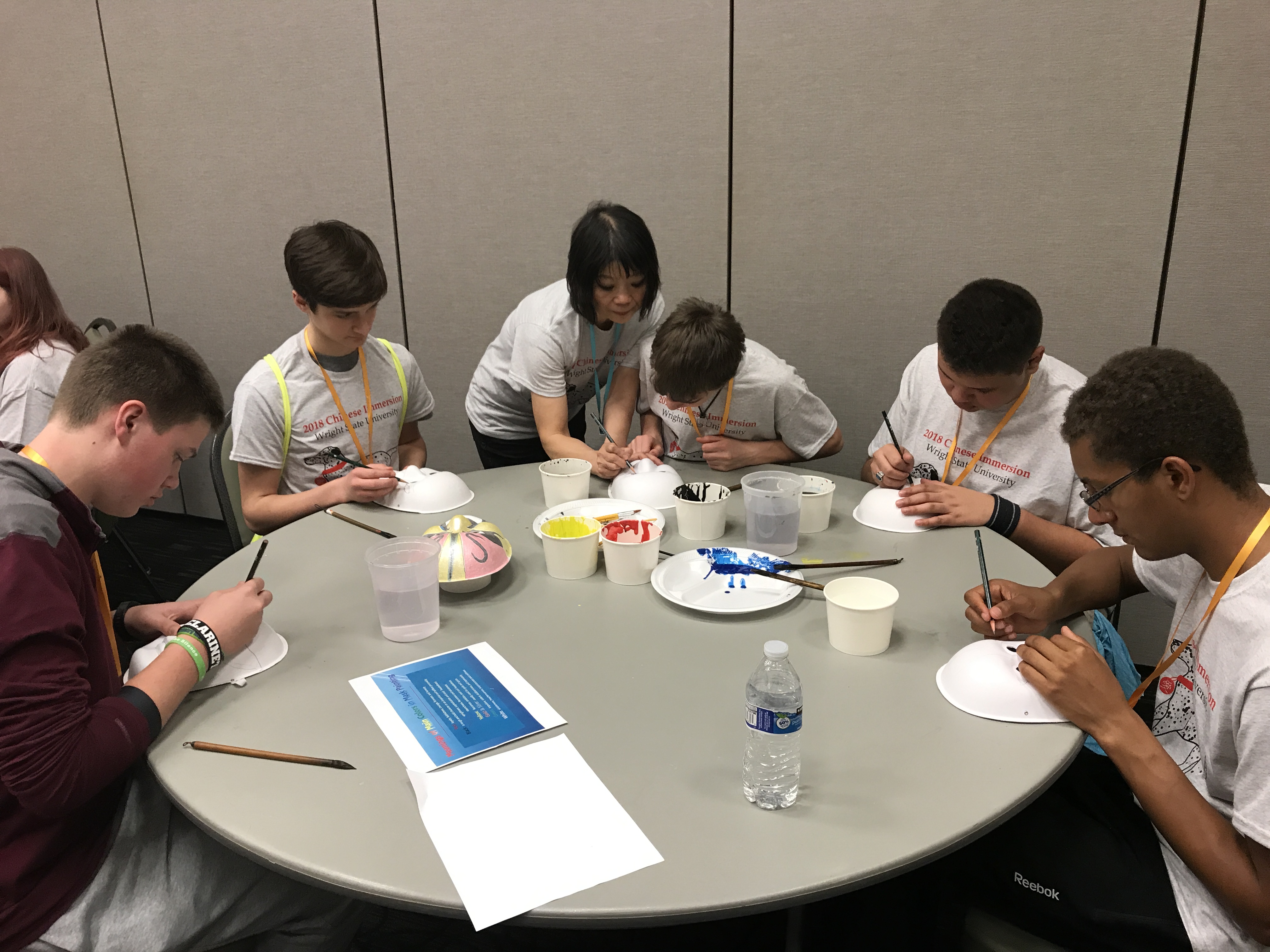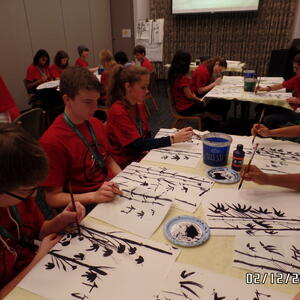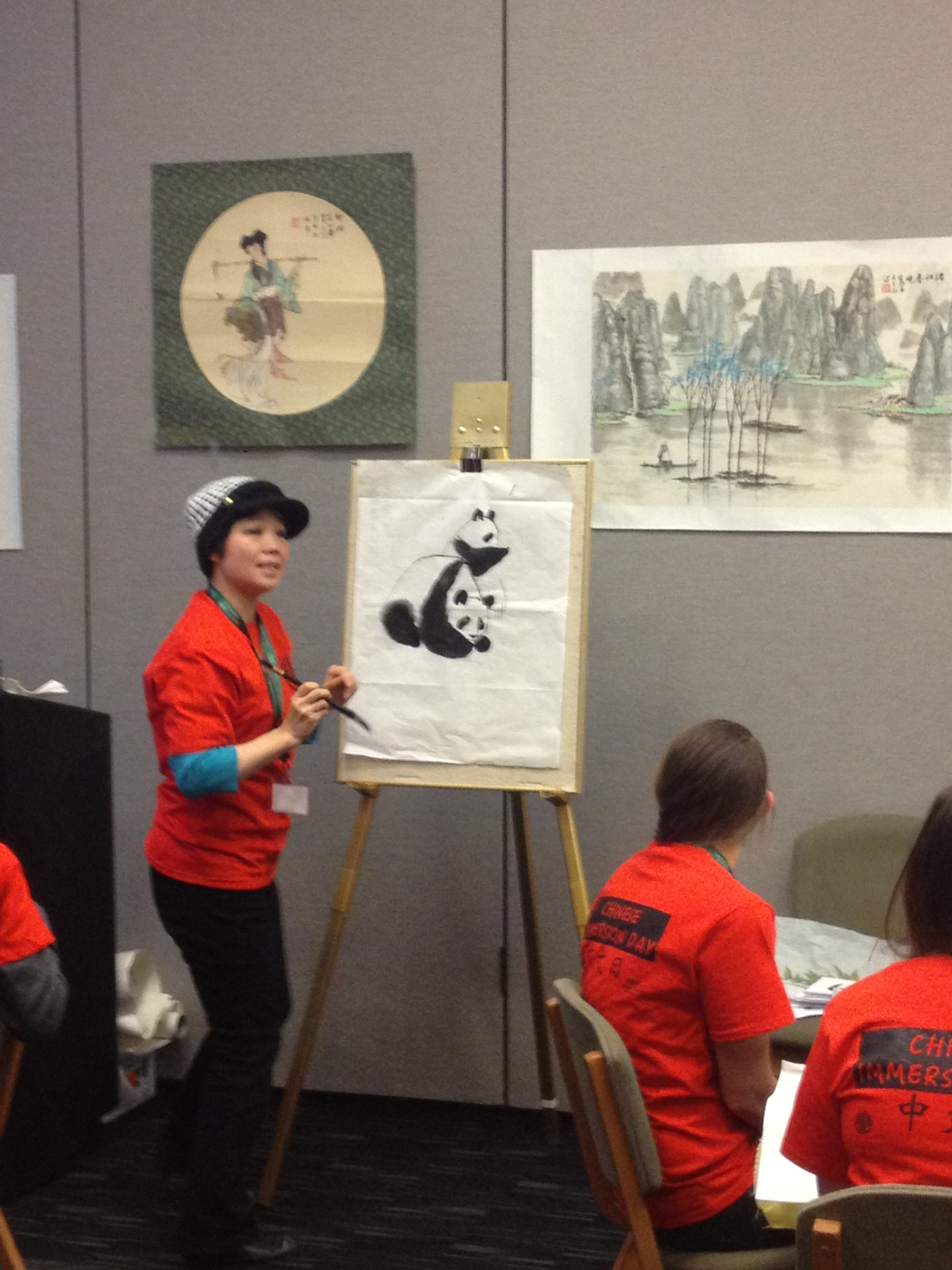 After pledging to speak only Chinese throughout the day, the students participated in four breakout sessions. In the Peking Opera Mask painting session, students learned to use brushes to put different colors to make a Chinese traditional Opera mask. Peking Operas are listed as the masterpieces of human intangible cultural heritage.