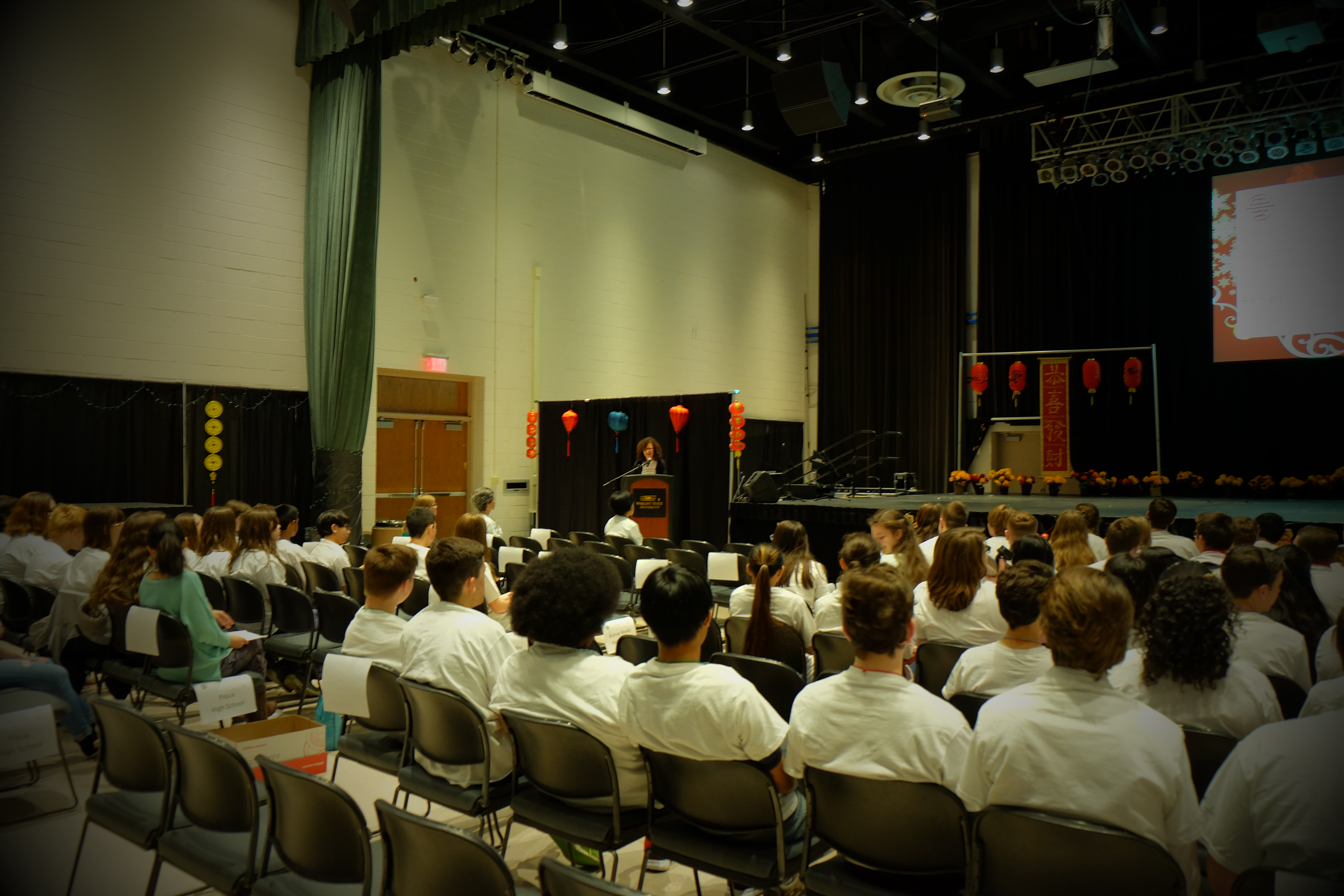 In the Chinese Culture Jeopardy room, the students were not only challenged with all the Chinese cultural knowledges, but also competed with speed and listening comprehension. This year the students got the opportunity to learn Fan Dance with Chinese typical Kong Fu music; students learned the Kong Fu postures with a red folding fan in one hand. Lunch was provided by our own school Chartwells service. The meal included prosperity dumplings, longevity noodles, with chicken or tofu.
