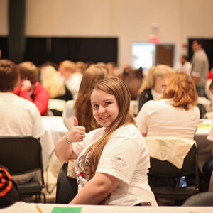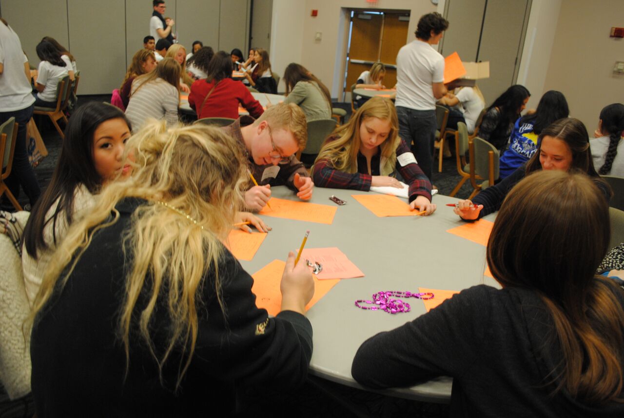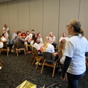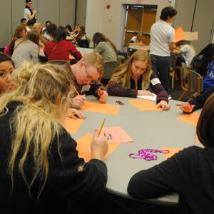 French language activities included: ice-breaking games, a flag parade, welcoming ceremonies, a Belgian-inspired lunch, and seven break-out sessions, such as a chocolate tasting, zumba, a treasure hunt, karaoke, and a trivia game based on Belgian comic books. This annual recruiting event brings top students to campus for a day of academically based engagement.