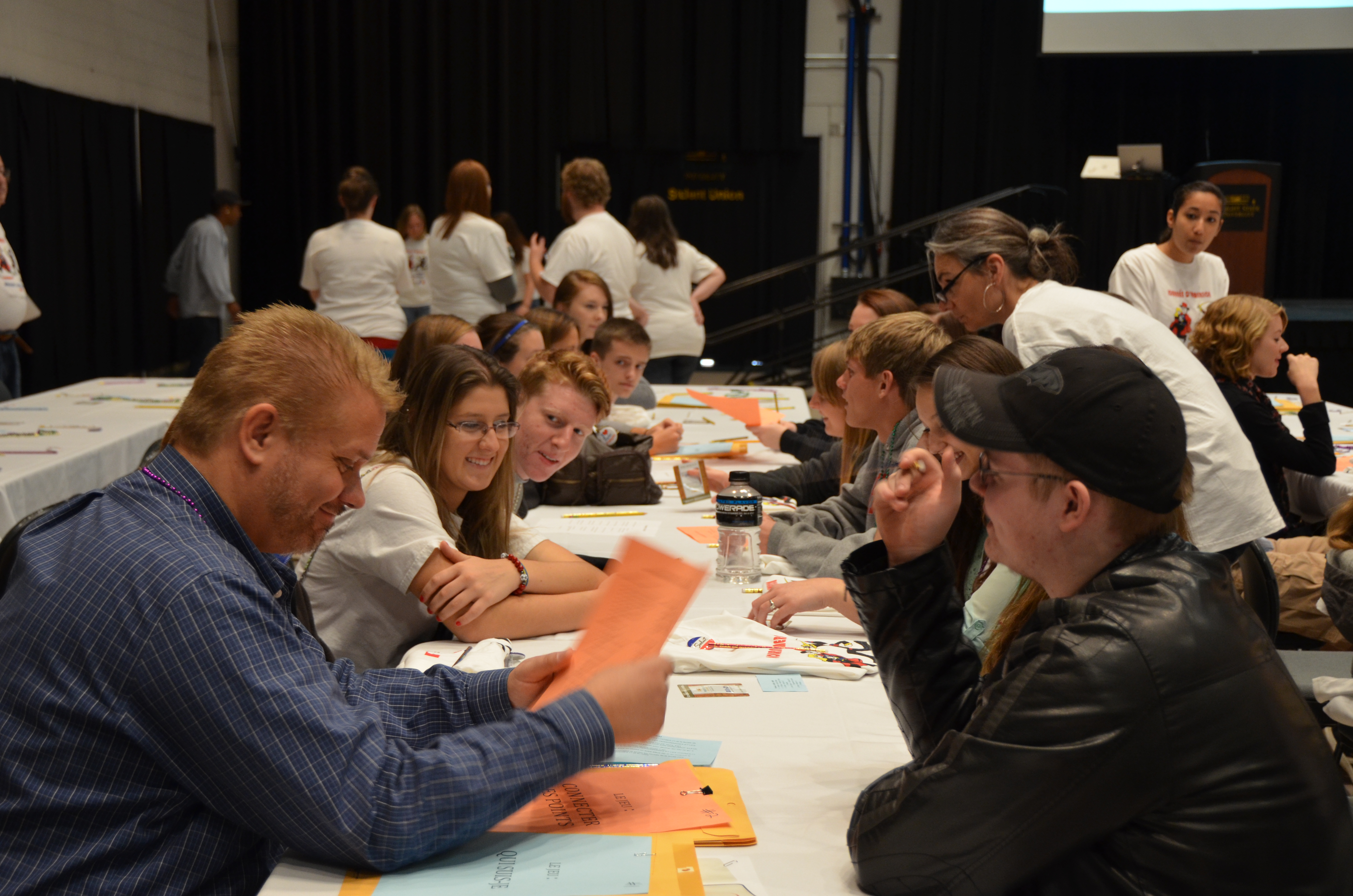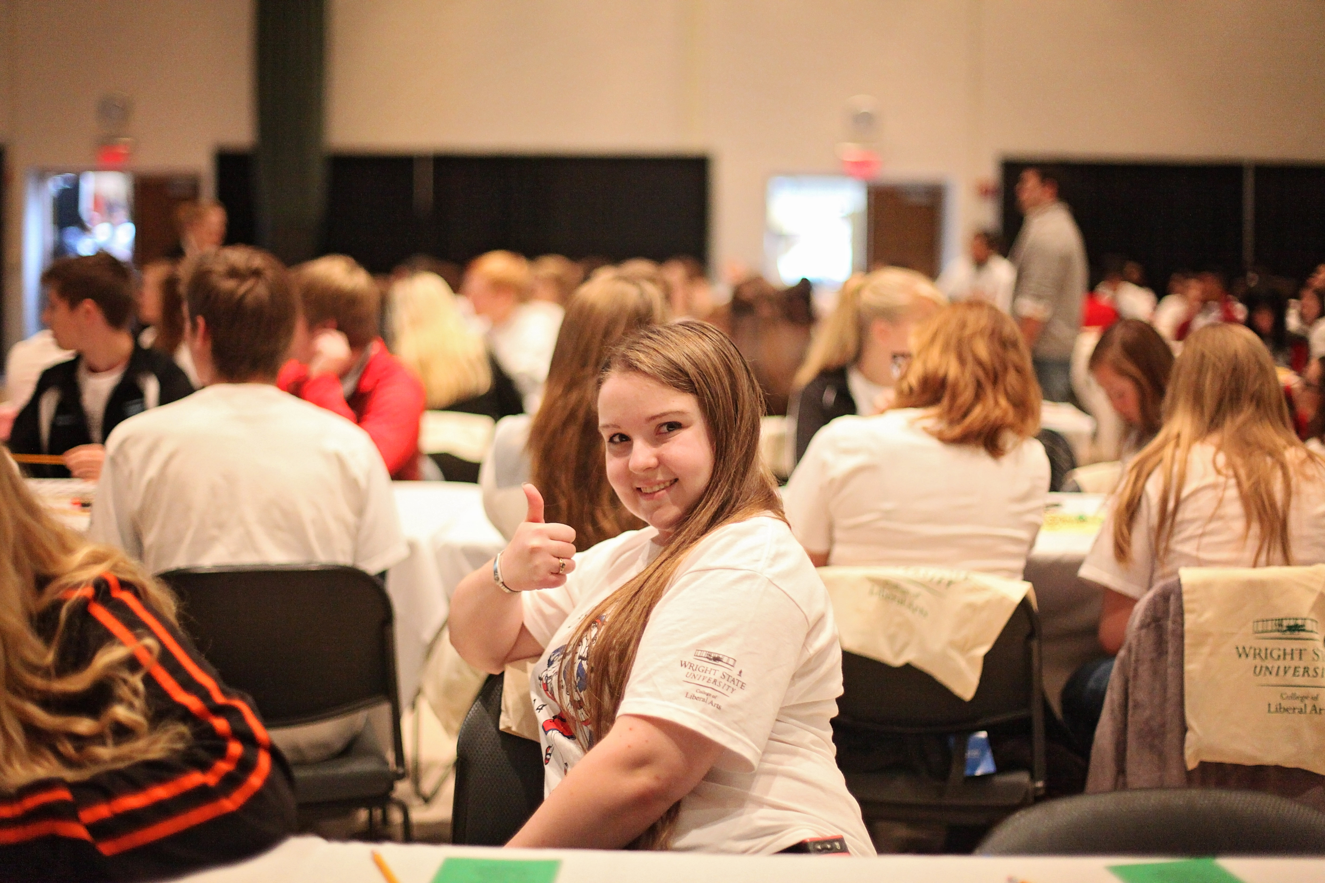 The twelfth annual Wright State French Immersion Day took place again in the Student Union on Wednesday, November 5, 2014. In attendance were 192 upper level high school French students from eighteen area high schools: Sycamore, Jonathan Alder, Anna, Dublin Scioto, St Peter’s, Allen East, Miami East, Urbana, Van Wert, Colerain, Mt Vernon, Milford, William-Mason, Northwestern, West Liberty-Salem, Arlington, Carroll and Kettering-Fairmont.