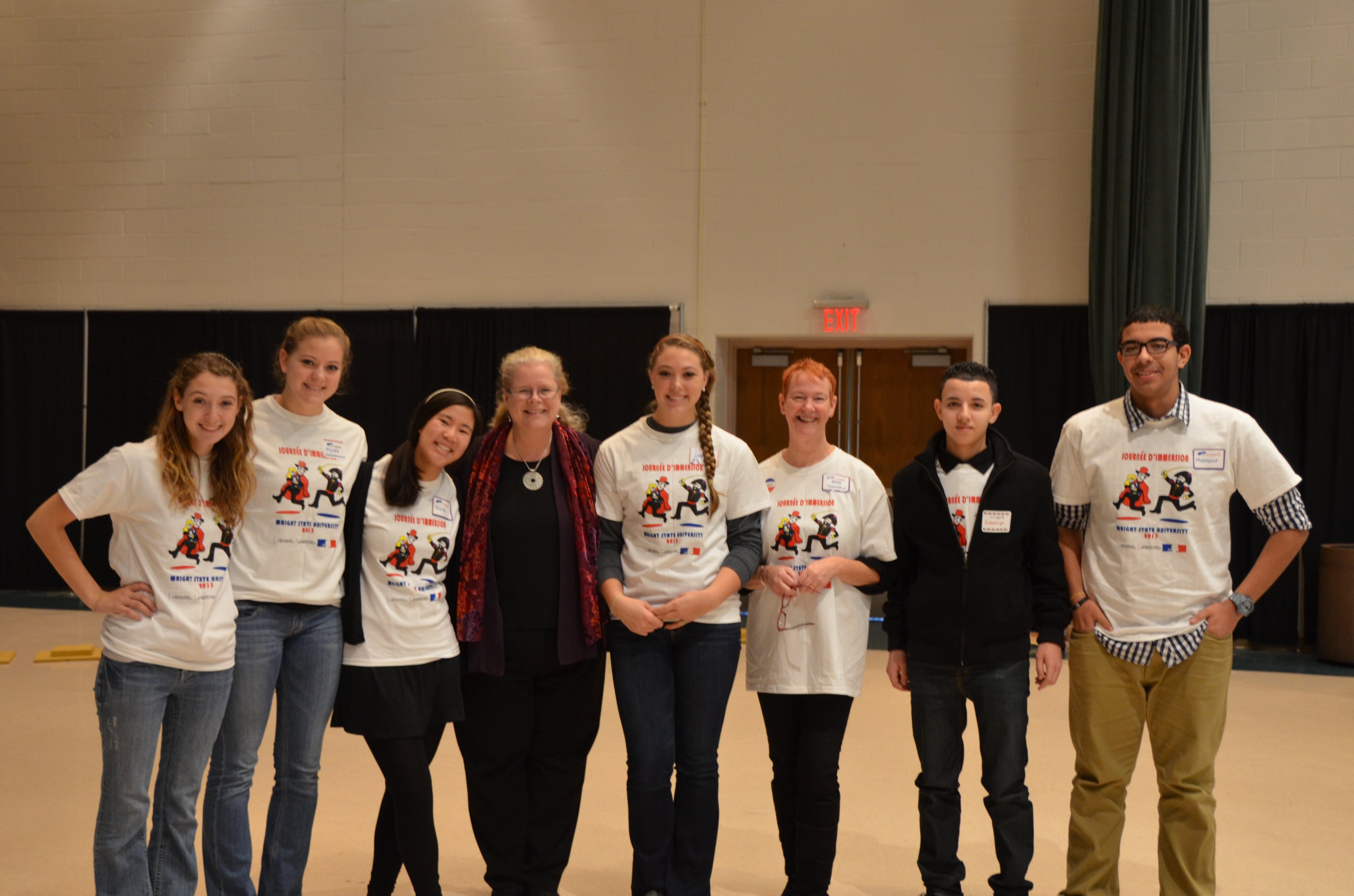 The eleventh annual Wright State French Immersion Day took place again in the Student Union on Wednesday, November 6, 2013. In attendance were 241 upper level high school French students from fourteen area high schools: Oakwood, St. Xavier, Sycamore, Jonathan Alder, Anna, Dublin Scioto, Allen East, Miami East, Chaminade-Julienne, Finneytown, Franklin City, West Liberty-Salem, Arlington, and Kettering-Fairmont.
