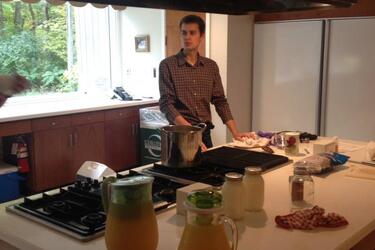 On Friday, October 10, several dozen French Club members gathered at the Rockafield Alumni Center to try their hand at cheese-making. Led by French Instructor Benjamin Hirt, the students learned how to make mozzarella cheese and caramel cream with Ben's own goat milk. A tasting followed allowing students, staff and visitors to try these products for the first time!