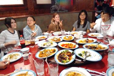 On Thursday, October 20th, the Wright State Chinese Club met for an informative Chinese-style business dinner at China Cottage in Springboro. American students, Chinese students, teachers, faculty, and family members gathered around a traditional Chinese round table for dinner. This gave each person the chance to visit with everyone at the table, which is an important part of the Chinese culture. The giant “lazy Susan” in the center of the table allowed each person to try everyone else’s dish! Each person ordered their desired dish and drink in Chinese and conversed throughout the evening