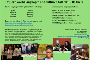 Explore the World Languages and Cultures classes offered by the department of Modern Languages in the 2015 Fall semester!