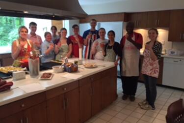 French Instructor, Karine Daddah taught the first section of her FR 4940 “La cuisine dans le cinéma français” class last week. This course entails the analysis of four French movies, each highlighting the cultural, social, and historical importance of food in every facet of French life. Under her guidance, the students recreate recipes introduced in the films in a hands-on workshop that culminates in authentic French meals and French “convivialité.” The cooking workshop takes place at the Rockafield Alumni House at WSU, and lecture classes are held on campus.