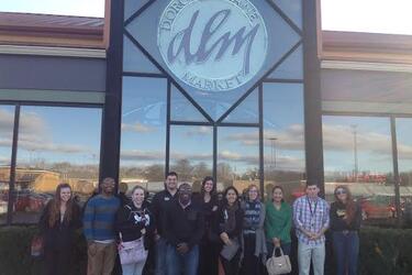 On November 7, 2014, the French Business class students visited Dorothy Lane Market, located in Centerville. They met with Calvin Mayne, VP of Dorothy Lane Market. The visit included a tour of the supermarket, delivered by Fred Pfeiffer, store director. The students enjoyed some delicious French food samples, and went through a French bread making demo while discussing the company’s marketing approach.