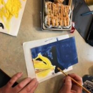 French students had fun at the French club coffee break on February 27th painting Le Louvre while enjoying yummy French pastries and coffee.