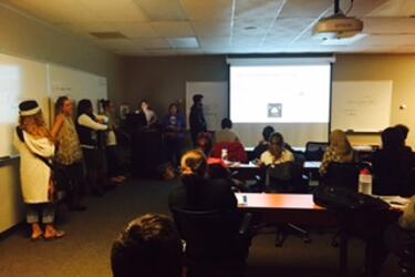 As part of a serving learning project, French professors Daddah and Hirt took their French conversation students to the French 1010, 1020, 2010 and 2020 classes the first two weeks of April to promote the French language.