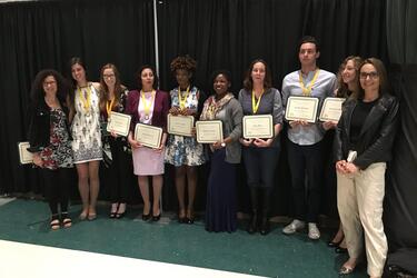 Thursday's Wright State's Honor Graduation, featuring many Department of Modern Languages' superstars! Left to right: Dr. Marie Hertzler, Department Chair, Tasha Fox, Liv Cole, Roufia Dehmani, Taylor Clark, Khadija Kirksey, Anne More, Csongor Bajnoczki, Samantha Hall, Dr. Pascale Abadie.