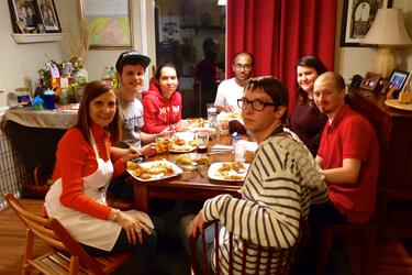 The Club de Español gathered at Profesora Cipriano’s house to make authentic dishes from México y España. Profesoras Astudillo and Cipriano guided the students as they prepared the foods for dinner. The students made chicken enchiladas, beef empanadas, rice with vegetables, ham and cheese in puff pastry, and a Spanish tortilla, which is a potato and onion omelet. The students also tried Manchego cheese, quince paste, turrón (a type of nougat typical during the Christmas holiday) and a variety of cookies from Spain and México. The students worked very hard cooking and speaking Spanish!