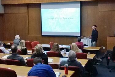 Ethan Harris, current MPA graduate student and intern for the Clark County Community Development Planning, recently presented with a team of other public administrators from the Miami Valley on how zoning can be used to increase locally-sourced food and combat hunger in the region at the 29th Annual Miami Valley Planning and Zoning Workshop.