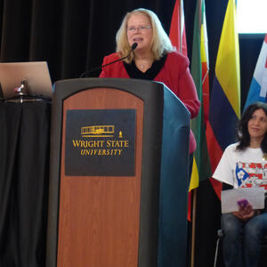 The theme was Viajar por el mundo hispanohablante. On their journey, students travelled to: Argentina, Ecuador, España, México, Perú and Puerto Rico. They had the opportunity to dance and to learn about various musical instruments from Spain and Latin America. Wright State Spanish majors and minors, the Wright State Spanish Club, and Spanish faculty members lead cultural activities in the target language for all of the high school Spanish students.