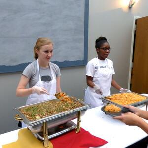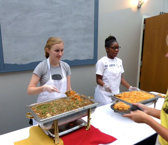 The student were treated to an authentic Puerto Rican lunch that included: arroz con pollo (rice with chicken) o arroz con gandules (pigeon peas with rice), plátanos maduros (plantains), and mantecaditos (shortbread cookies with jelly) while listening to live music.